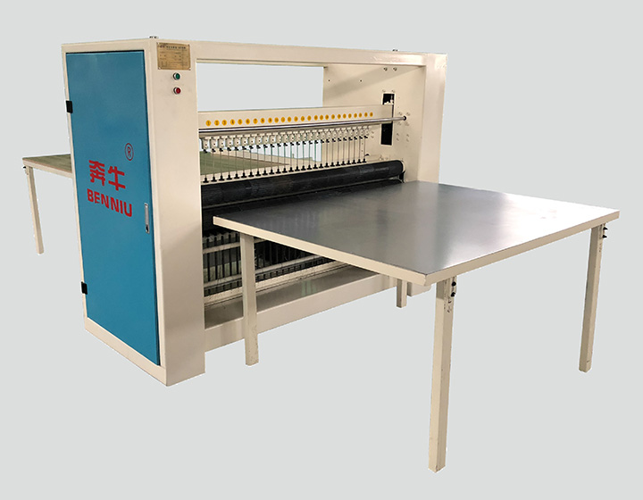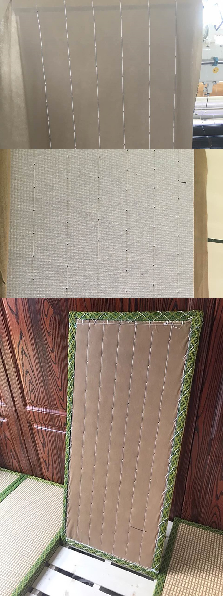 此機專業(yè)用于榻榻米底布的縫合與料塊的拼接,隨著人們生活條件的提高榻榻米墊逐漸要求為無膠化,全線縫底布成為制作榻榻米更為環(huán)保耐用的做法,工作當中的小塊材料也避免了浪費,可由此機拼接成張,提高產(chǎn)品質量,降低產(chǎn)品成本。此機整合了我公司歷代多針厚料絎縫機的優(yōu)點和吸收了日本設備的先進技術,采用鋼板折彎一次成型非鐵架焊接,整體結構更加挺闊穩(wěn)固,螺旋針導向技術達到了防斷針、防跳線的核心功能。在此基礎上真正意義上實現(xiàn)了生產(chǎn)速度快,縫厚能力強,性能穩(wěn)定的效果。此機幾乎沒有易損件,頗受客戶好評!常用縫紉寬度有1.2米寬至1.5米寬度,行距大小及針數(shù)可根據(jù)客戶需求定做??p紉厚度可達到6公分,動力選用3.0千瓦電機驅動。