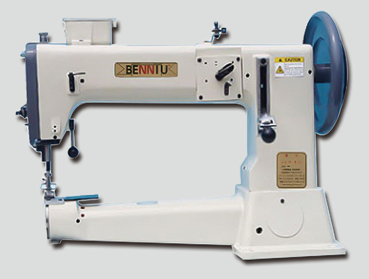 產(chǎn)品概述:本機型是飛虹厚料機系列中的大力士。采用上下復(fù)合送料方式和圓筒形縫臺。送料力量強勁穩(wěn)定,能輕易車縫多層厚重物料,線跡精準美觀,采用進口大型特種擺梭,梭芯線量大,縫制效率高。 梭芯繞線裝置位于機頭上部,壓腳提升量可達20毫米,可適用于縫制手提袋的手把、棒球手套、運動器材、安全帶、帳篷、坐墊、箱包等厚料和特厚料物品。位于機頭頂部的硅油盒,用來潤滑縫絲和冷卻機針,使用方便,縫制品的線跡更美觀、挺括。