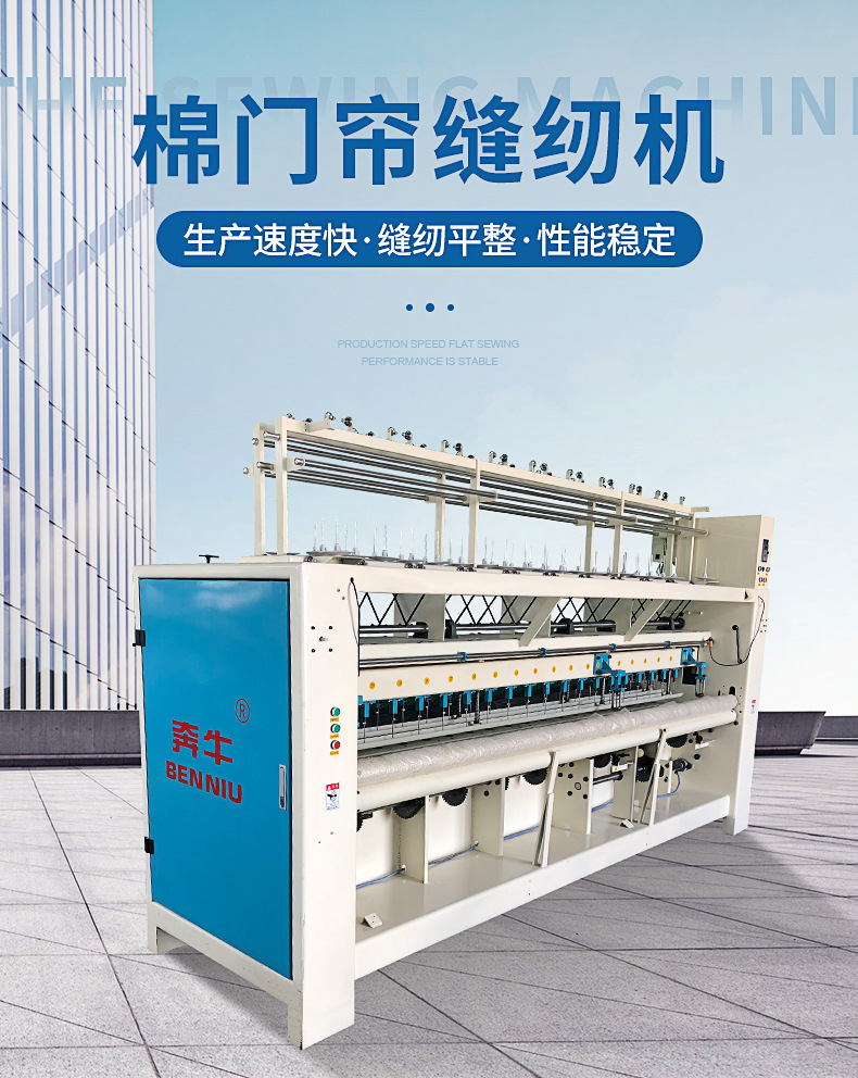 此機(jī)是我廠專門針對棉門簾縫紉所開發(fā)出來的一款棉門簾縫紉機(jī),此機(jī)具融入了我廠新研發(fā)的先進(jìn)技術(shù)理念,具有有生產(chǎn)速度快,縫紉平整,性能穩(wěn)定,幾乎沒有易損件,頗受客戶好評!此機(jī)采用先進(jìn)的六羅拉拉料,使前后兩塊棉門簾之間連接十分順暢,縫紉接頭時(shí)不需要人工拖拽,可節(jié)省兩個(gè)人工,采用大碳鋼旋梭,耐用度非常高。