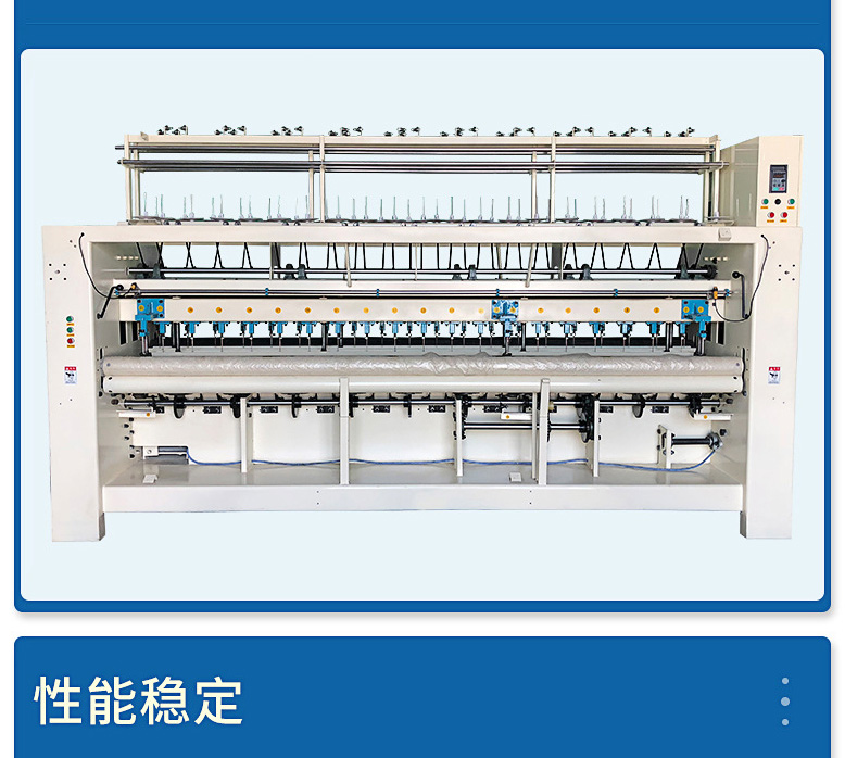 此機(jī)專業(yè)適用于制作棉門簾、大棚棉被、汽車菜被等大型棉制品的縫紉生產(chǎn)。常用縫紉寬度有2米寬10-14條線,3米寬18-22條線,4米寬24-29條線,以上多種尺寸可供用戶選擇,還可以根據(jù)客戶需求進(jìn)行特殊定做。此機(jī)縫紉出來的線跡為鎖式線跡,效果平整美觀不開線,動力選用三項(xiàng)3.0千瓦調(diào)速電機(jī)驅(qū)動,機(jī)器轉(zhuǎn)速可自由操控在每分鐘0一150針之間,正常操作每分鐘縫紉三米,針距可由0.5—4公分自由調(diào)整,縫紉厚度可達(dá)到8公分,采用德國進(jìn)口機(jī)針,縫紉帆布、皮U、雨衣布等棉門簾美觀高效。