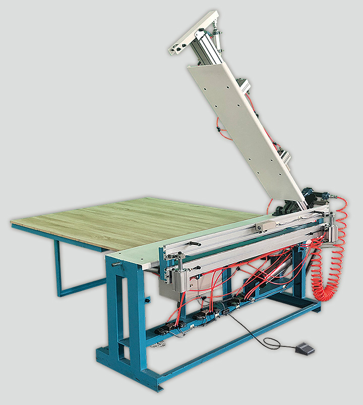 此機(jī)為榻榻米墊子抻面機(jī),應(yīng)用于榻榻米制作過(guò)程的抻席面工序,此機(jī)融入了我公司先進(jìn)的技術(shù)工藝,抻席平整,席面松緊度可調(diào),架構(gòu)結(jié)實(shí),抻席更穩(wěn)定,使用壽命長(zhǎng)。集成電控操控,電磁閥氣缸壓緊,整機(jī)操作便捷舒適。