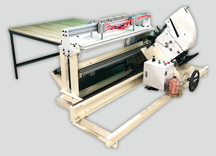此機為榻榻米斜縫機,專業(yè)應用于榻榻米斜邊的包邊縫紉,此機吸收了日本進口機的先進技術特點,融入了我公司國企工程師創(chuàng)新的先進技術,達到了榻榻米花邊機效果的更加智能化,使得榻榻米縫紉制作更加自動化、輕松化、產(chǎn)品高質量化。此機有全自動模式及手動模式,兩種模式隨意切換,自動模式具有全自動起頭收尾,自動檢測收尾距離自動分距,不需繁瑣操作,只需一鍵,即可完成當前工序所有縫紉工作,大大降低了人工操作要求。手動模式可用于縫紉異形榻榻米墊、開口榻榻米墊,操作實用方便。設備具有墊內自動鎖針功能,使收尾縫紉效果更加緊固,大大提高榻榻米墊質量。設備電腦操控屏可根據(jù)需求用于調整縫速快慢、針距大小、縫紉系數(shù)等功能,便捷舒適。